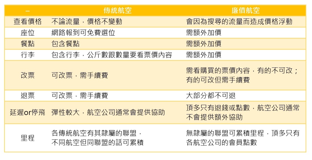 這篇就來詳細解析廉價航空與傳統航空的差異與比較
